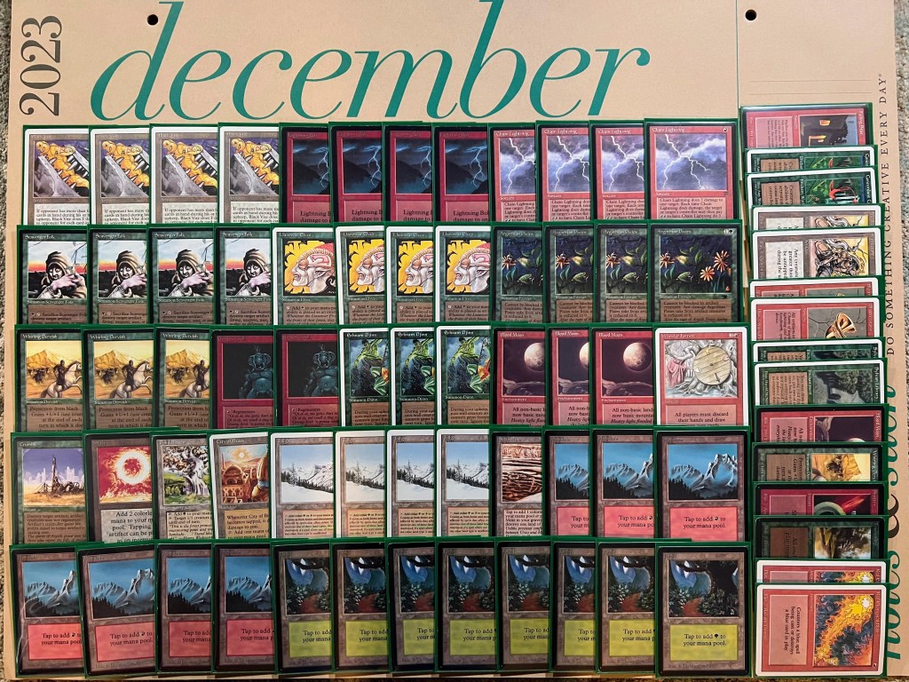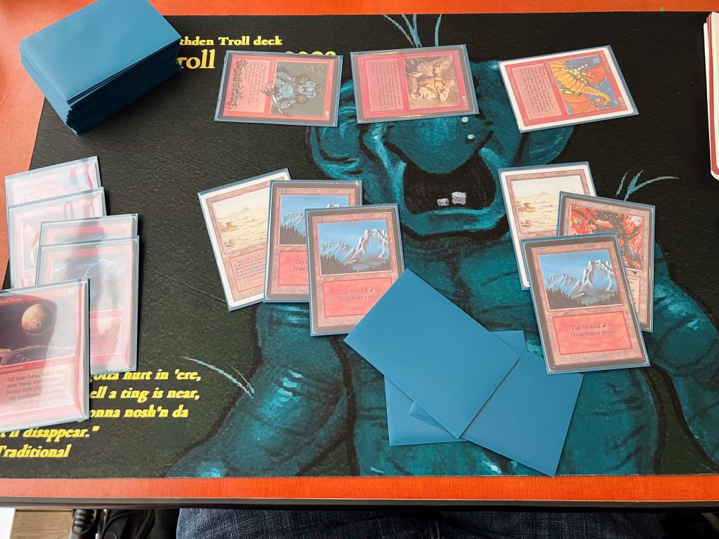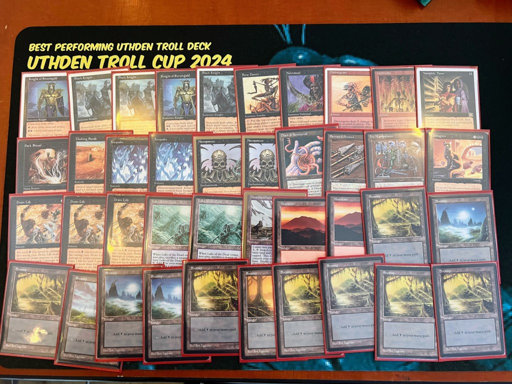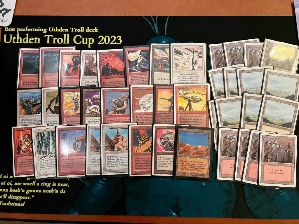 My journey to becoming the 2024 Uthden Troll Cup “People’s Champ” (and accidentally the 2024 Uthden Troll Cup Overall Winner) starts in early 2023. I catch some Timmy Talks videos from UTC 2022, and my initial investigation suggests this is no ordinary Old School tournament. The main event is standard Swedish, but a good portion of the tournament features limited formats: repack drafts, old booster drafts, and 2023’s crown jewel – 4th Edition, Chronicles, Fallen Empires Sealed Deck (with ante and weekend long trading). Sign me up!